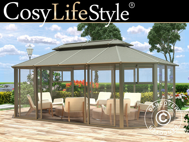Dancover Trädgårdspaviljong Trädgårdspaviljong San Bruno med sidoväggar av polykarbonat, åttakantigt 4,35x6,6m, Mässing
