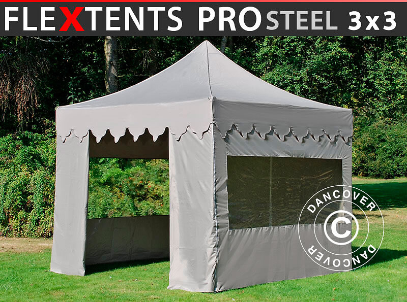 Dancover Snabbtält Depåtält Easy-up tält Eventtält Partytält FleXtents PRO Steel "Morocco" 3x3m Latte, inkl. 4 sidor