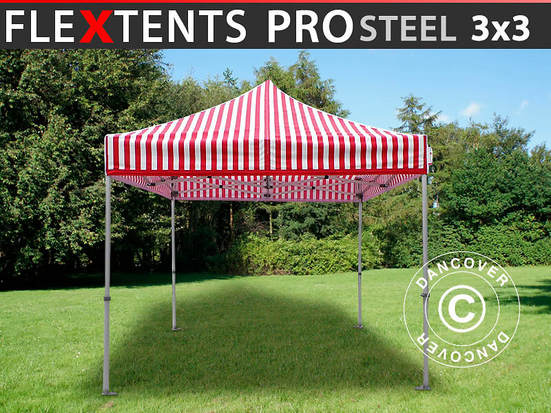 Dancover Snabbtält Depåtält Easy-up tält Eventtält Partytält FleXtents PRO Steel 3x3m Randigt