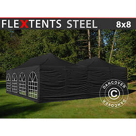 Dancover Snabbtält Depåtält Easy-up tält Eventtält Partytält FleXtents Steel 8x8m Svart, inkl. 8 sidoväggar