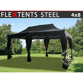 Dancover Snabbtält Depåtält Easy-up tält Eventtält Partytält FleXtents Steel 4x8m Svart, inkl. 6 dekorativa gardiner