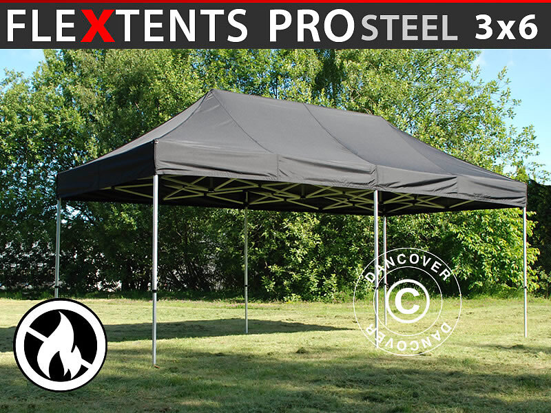 Dancover Snabbtält Depåtält Easy-up tält Eventtält Partytält FleXtents PRO Steel 3x6m Svart, Flammhämmande