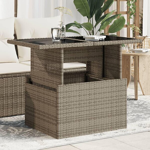 vidaXL Trädgårdsbord med glasskiva grå 100x55x73 cm konstrotting 366121
