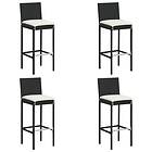 vidaXL Barstolar för utomhusbruk med dynor 4 st svart konstrotting 316670
