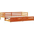 vidaXL Utdragbar dagbädd med lådor vaxad brun 90x200 cm massiv furu