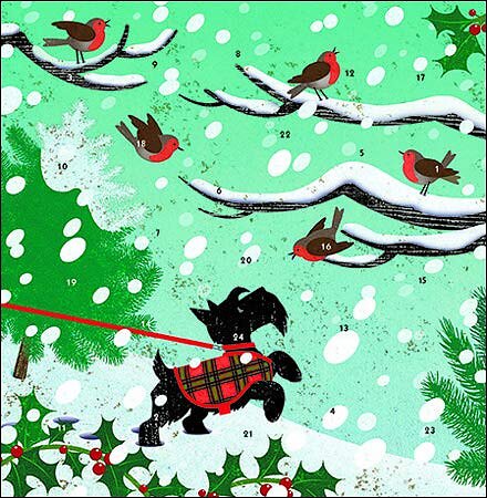 Snow Scottie Dog and Robins Advent Calendar 160 x 160 mm