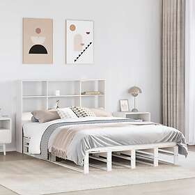 vidaXL Säng med bokhylla utan madrass vit 135x190 cm massiv trä