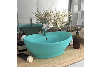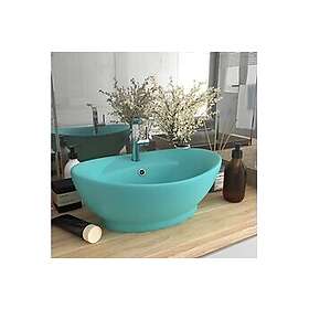 vidaXL Ovalt handfat med bräddavlopp matt ljusgrön 58,5x39 cm keramik