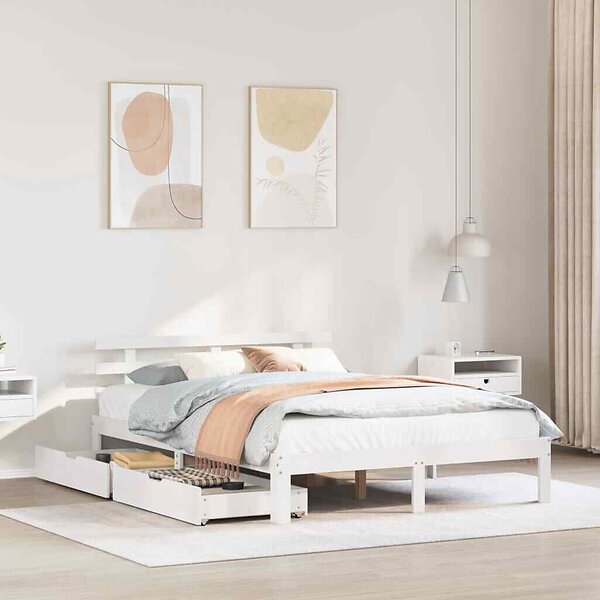 vidaXL Sängram med lådor vit 120x190 cm massiv furu