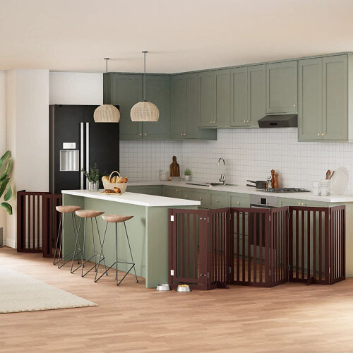 vidaXL Hundgrind med dörr vikbar 15 paneler brun 750 cm poppel