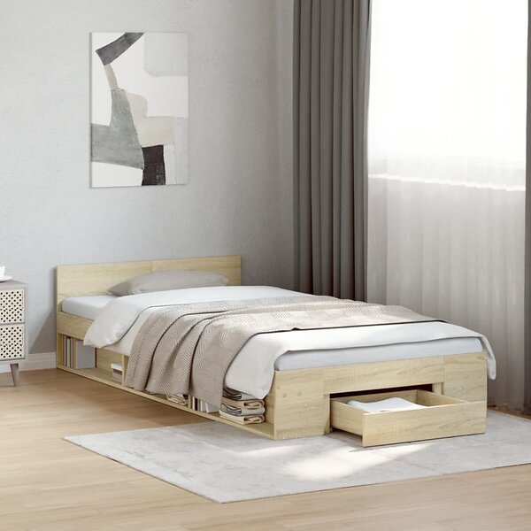 vidaXL Sängram med låda sonoma-ek 90x190 cm konstruerat trä