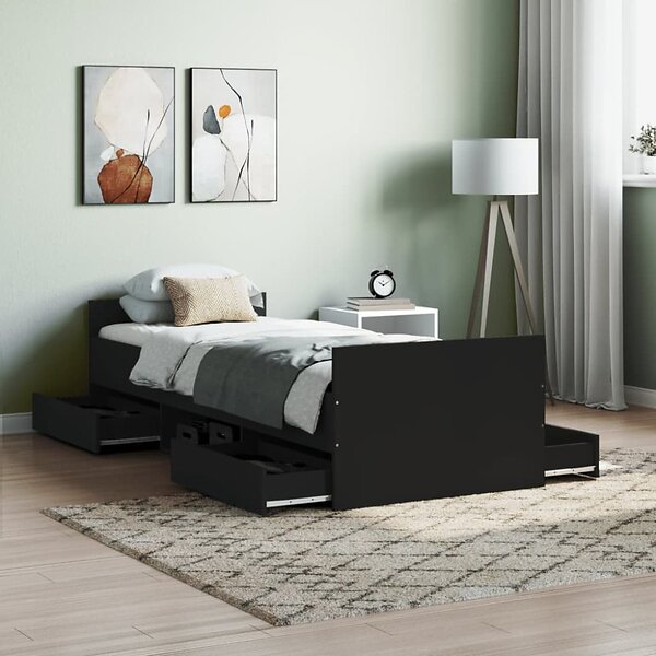 vidaXL Sängram med huvudgavel och fotgavel svart 75x190 cm
