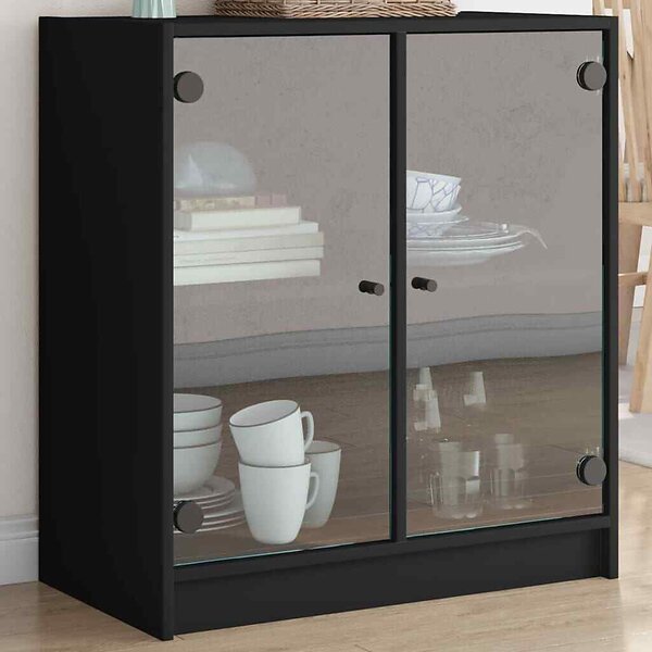vidaXL Sidoskåp Cabinet with Glass Doors Black 68x37x75.5cm