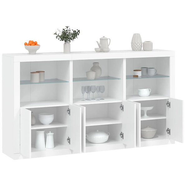vidaXL Skänk med LED-belysning vit 181,5x37x100 cm