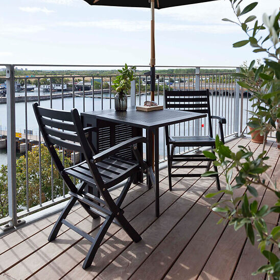 Cinas Balkongparasoll svart/teaklook Ø180 cm