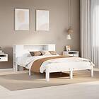vidaXL Säng med bokhylla utan madrass vit 150x200cm massiv furu