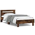 vidaXL Sängram med huvudgavel och LED rökfärgad ek 100x200 cm