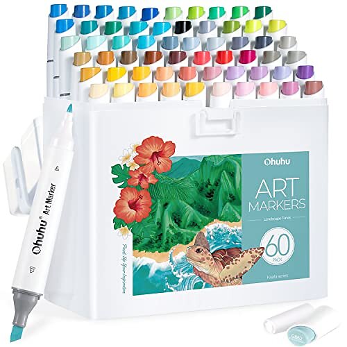 Ohuhu Kaala Slim Broad and Fine Dual Tips Alcohol Art Markers- 60 Colors Landscape tone