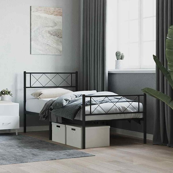 vidaXL Sängram med huvudgavel och fotgavel svart metall 90x200 cm