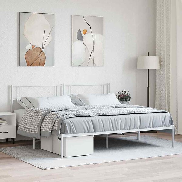 vidaXL Bed Frame with headboard metal white 180x200 cm