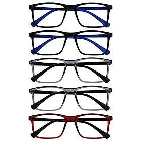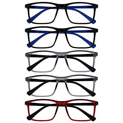 OPULIZE Bläckläsglasögon 5-pack stor rektangulär ram fjädergångjärn reptåliga män kvinnor RRRRR4-1177Z +2,00