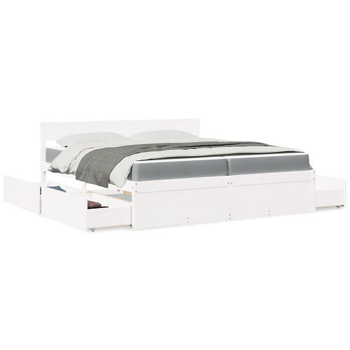 vidaXL Sängram med lådor och madrass vit 200x200 cm massiv furu