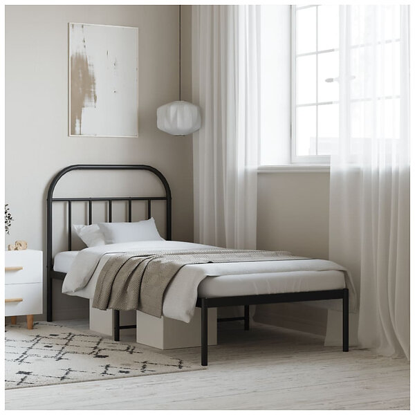 vidaXL Sängram med huvudgavel metall svart 90x200 cm