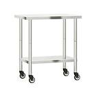 vidaXL Arbetsbord med hjul 82,5x55x85 cm rostfritt stål