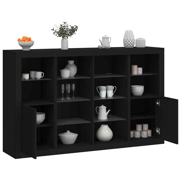 vidaXL Sideboard Set with LED Lighting 3 pcs Black 120x30x70cm