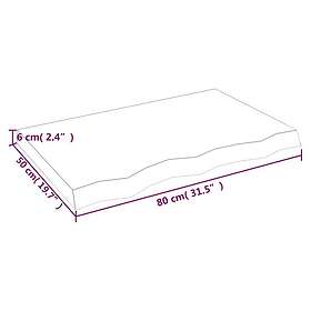 vidaXL Bänkskiva för badrum 80x50x(2-6) cm obehandlat massivt trä