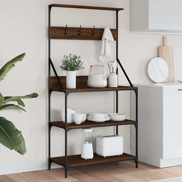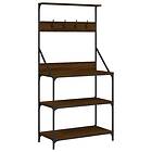 vidaXL Kökshylla med krokar 4 hyllplan brun ek konstruerat trä