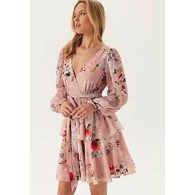 Goddiva Floral Long Sleeve Tiered Skater Dress