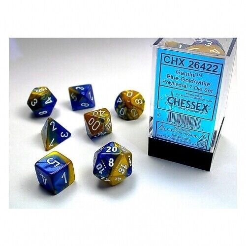The best price for Chessex Gaming Gemini™ Blue-Gold/white (7-Die set) right now is £121.00. PriceSpy compares deals and offers from online and local shops.