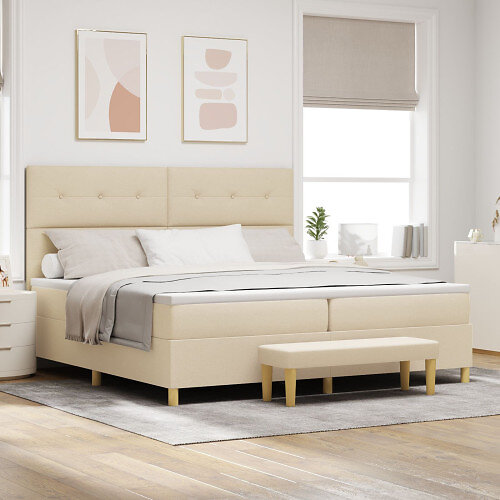 vidaXL Sängbotten med madrass och bänk Grädde 200x200 cm Tyg