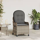 vidaXL Recliner Stol med Kudde Grå Poly Rattan