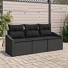 vidaXL Lounge Set 3 Pieces with Cushions Black Poly Rattan