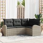 vidaXL Lounge Set 4 Pieces with Cushions Light Gray Poly Rattan