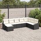 vidaXL 8-delars trädgårdsoffset med kuddar svart polyrotting