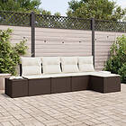 vidaXL 5-delat trädgårdsoffaset med kuddar, Brun Poly Rattan