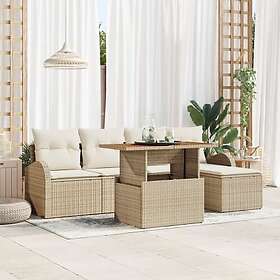 vidaXL 6-dela Trädgårdsmatgrupp med kuddar Beige Poly Rottings Akacia