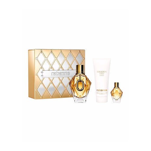 Rabanne Million Gold For Her Perfume set (90ml edp Spray Refillable, 100ml perfumed body lotion, 5ml edp)