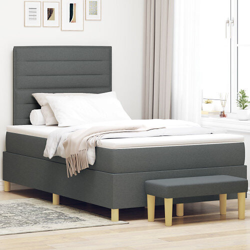vidaXL Boxsäng med madrass & bänk mörkgrå 120x200 cm tyg