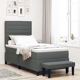 vidaXL Boxstjärna säng med madrass & bänk mörkgrå 90x200 cm tyg