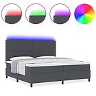 vidaXL Box Spring Säng med Madrass & LED Mörkgrå 200x200 cm Kordflors Tyg