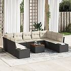 vidaXL Trädgårdsoff SET Set om 10 Svart och grädde Rotting, Polyester tyg
