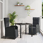 vidaXL 3 Delars Trädgårds Matbord Set med Kuddar Svart Poly Ratt