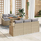 vidaXL Garden Dining Set 6 Pieces with Cushions Beige Poly Rattan Acacia