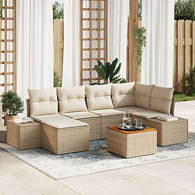 vidaXL 7-delars Trädgårdsoff SET med Kuddar i Beige Poly Rattan Akacia