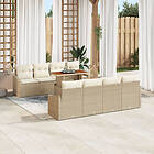 vidaXL Garden Dining Set 9 Pieces with Cushions Beige Poly Rattan Acacia