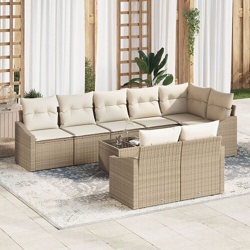 vidaXL Lounge Set 9 Pieces Beige Poly Rattan